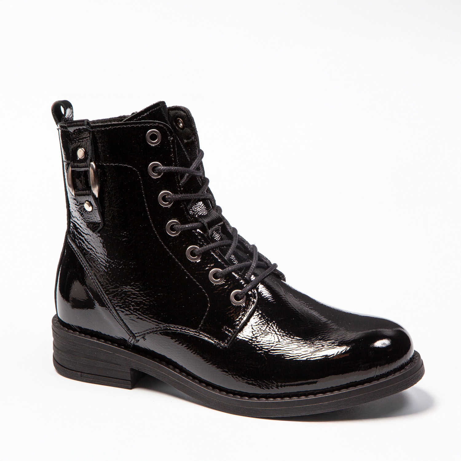 Boots vernis noir – Cuir verni certifié LWG – Fabrication portugaise