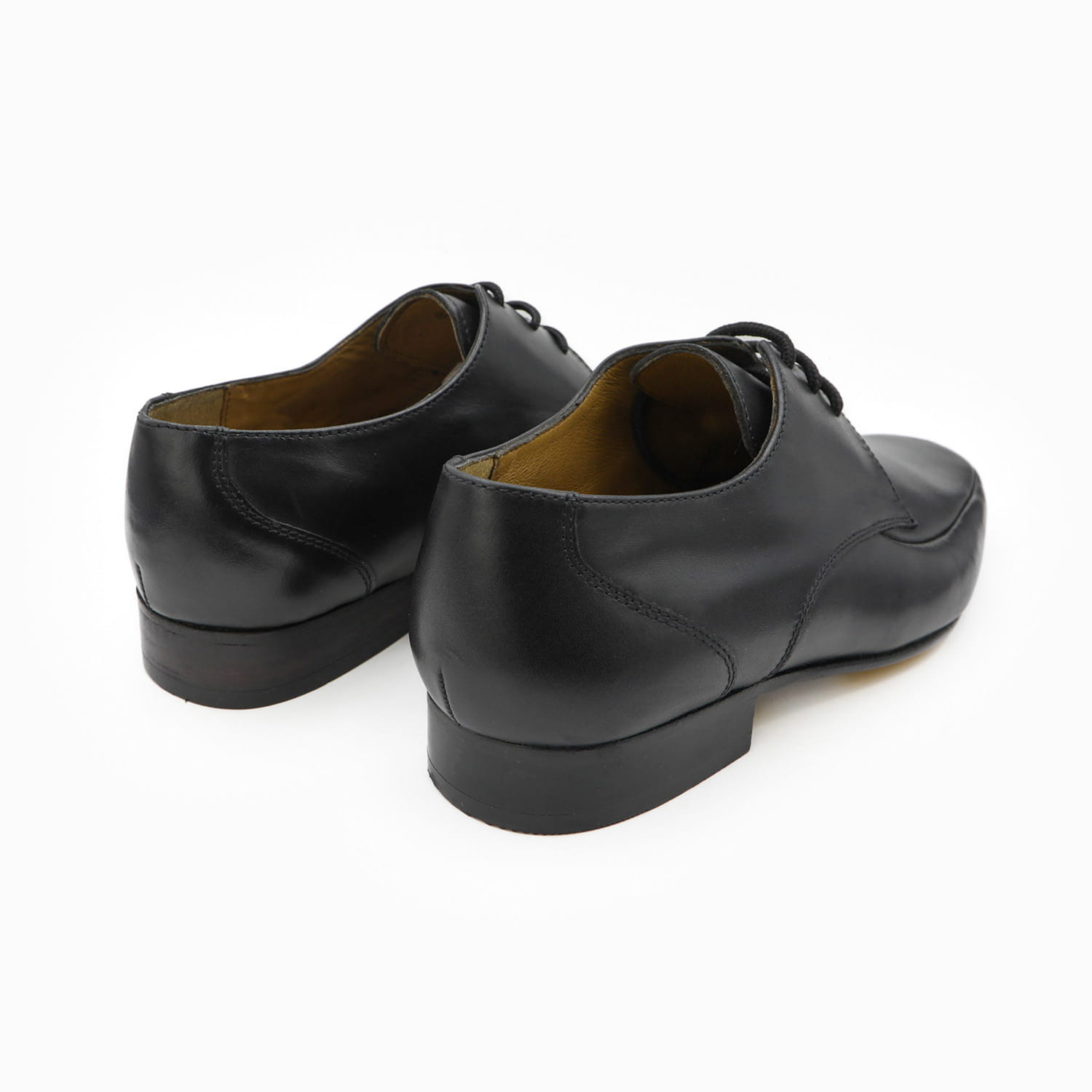 Cuir pleine fleur sur toute la chaussure : tige, doublure, semelles intérieure et extérieure. Matière noble qui respire naturellement et patine avec noblesse. Un noir profond qui traverse les décennies. - Laçage classique 3 œillets