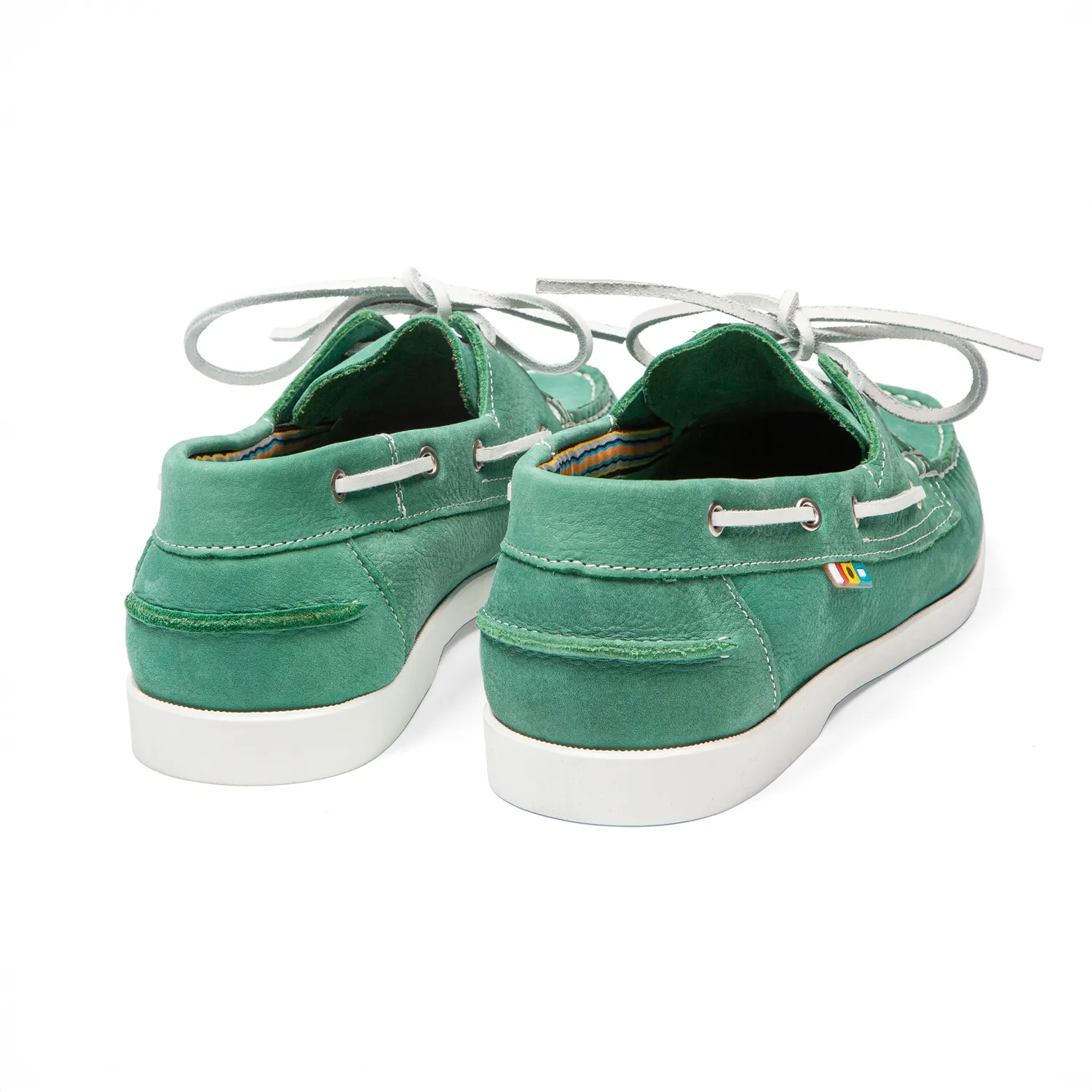 Le cuir respire, la semelle accroche, vos pieds ne se plaignent jamais. Ce vert pin maritime s’accorde naturellement au chino beige, au short en lin écru, à la marinière classique. Zéro question vestimentaire, juste une couleur qui dialogue avec la nature sans jamais forcer.