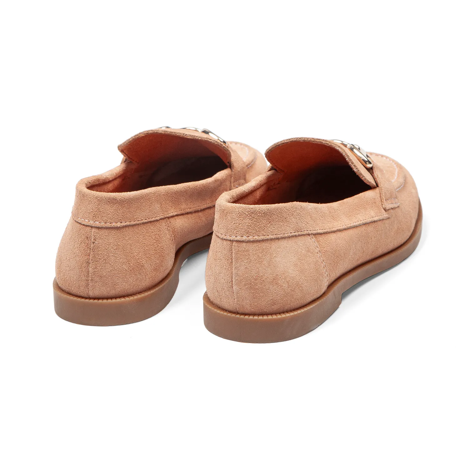 Cuir velours sélectionné dans des tanneries auditées. Le velouté du daim apporte une texture raffinée, la boucle mors argentée une touche d’élégance discrète. Un nude intemporel qui s’accorde à absolument tout, du bureau au week-end. - Semelle TPR confort marche