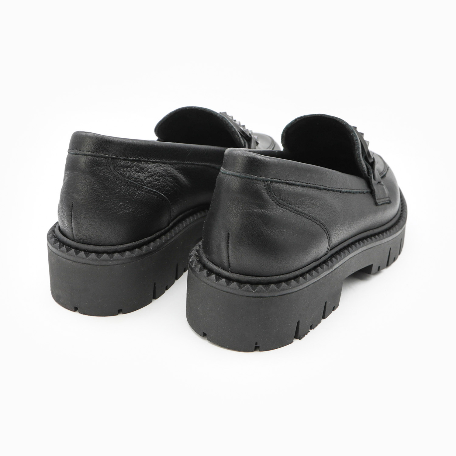 Mocassins femme plateforme – Cuir noir certifié LWG – Fabrication espagnole