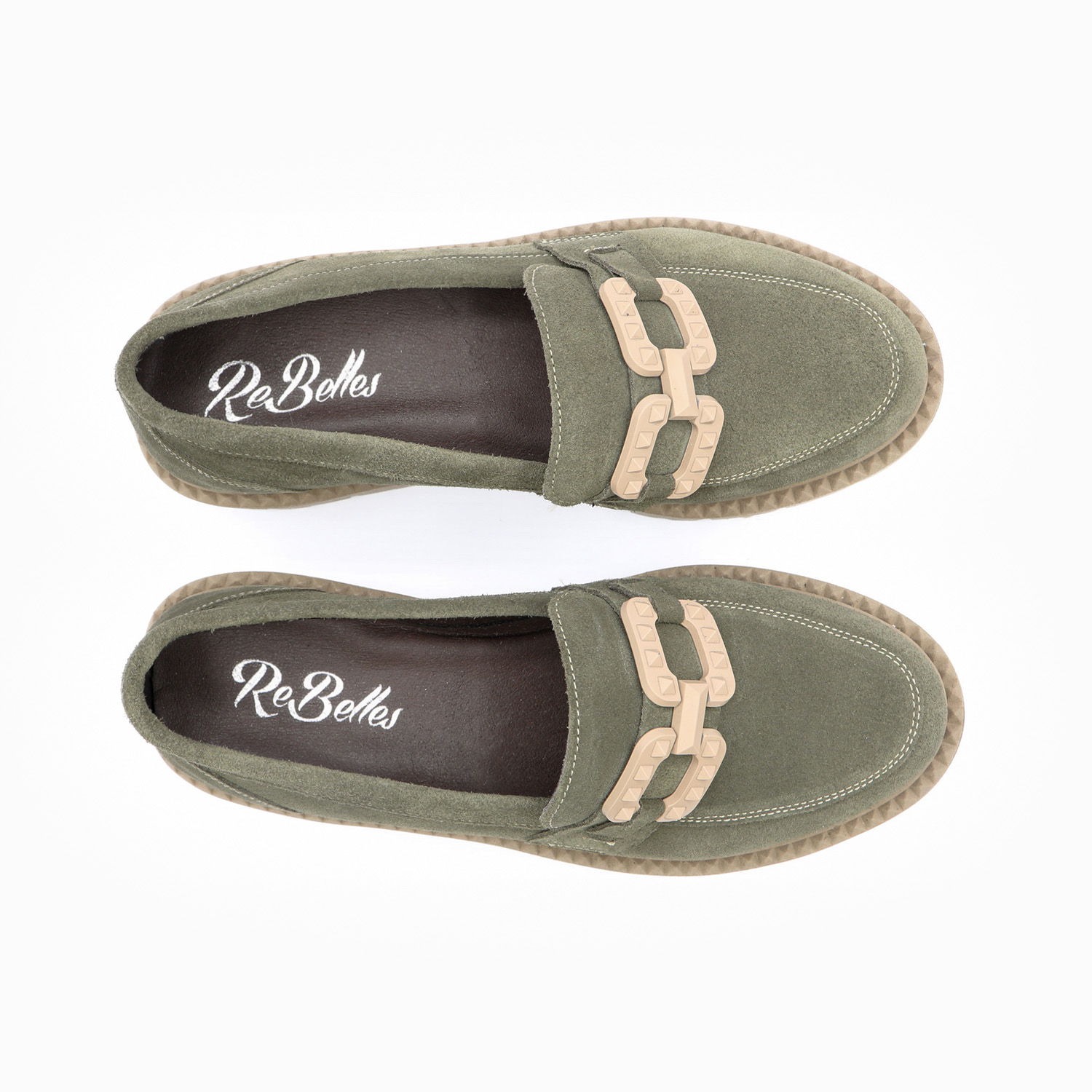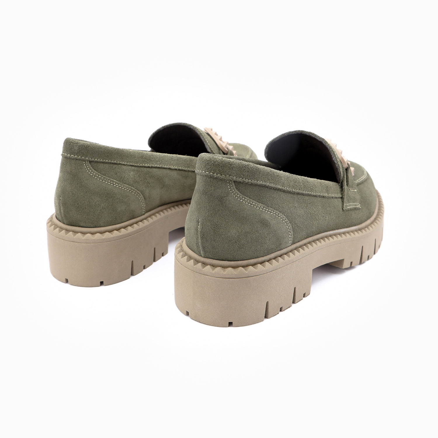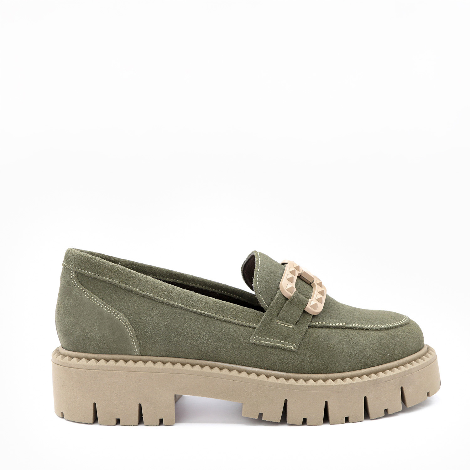 Mocassins plateformes – Cuir velours kaki certifié LWG – Fabrication espagnole