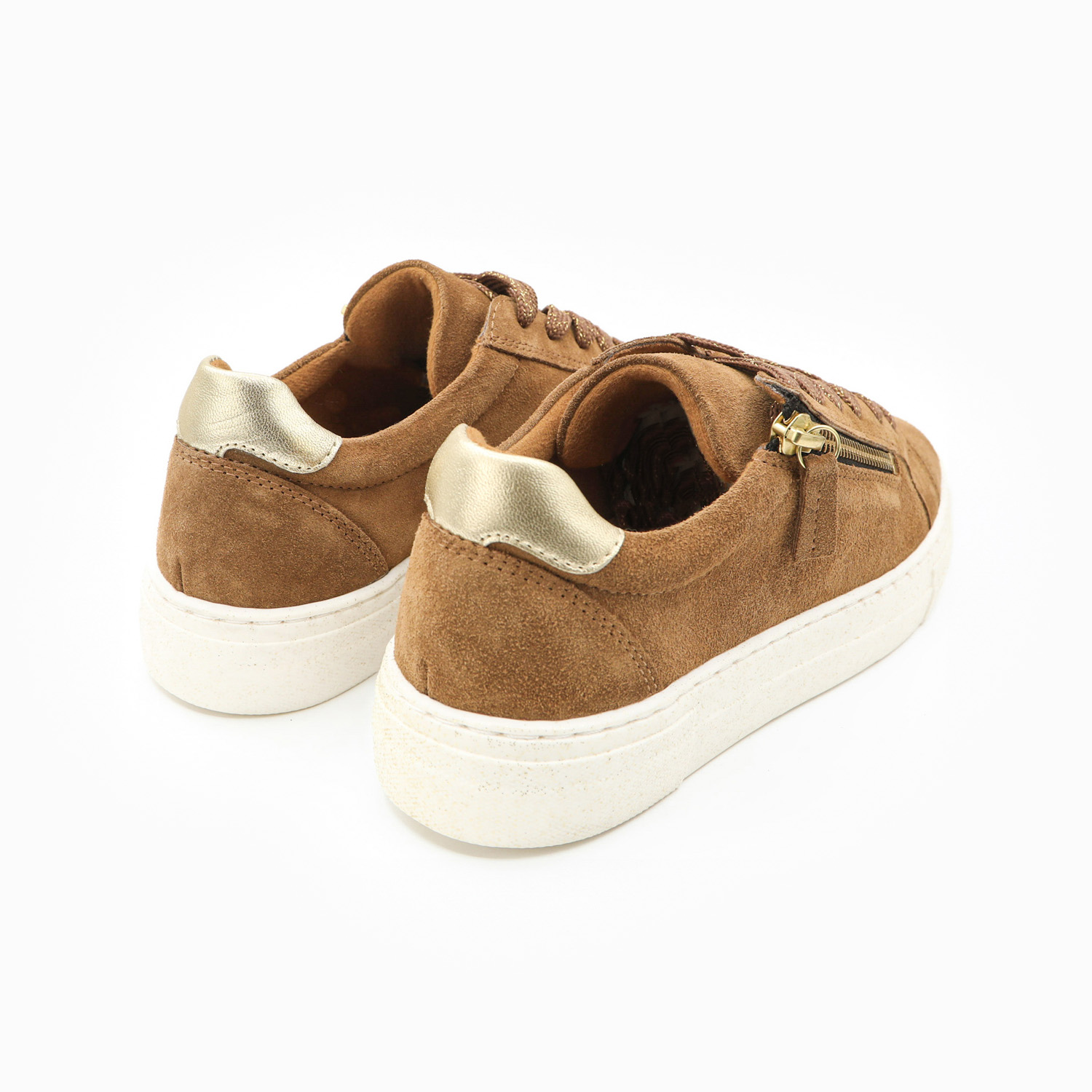 Sneakers femme tendance – Cuir velours cognac certifié LWG – Fabrication portugaise