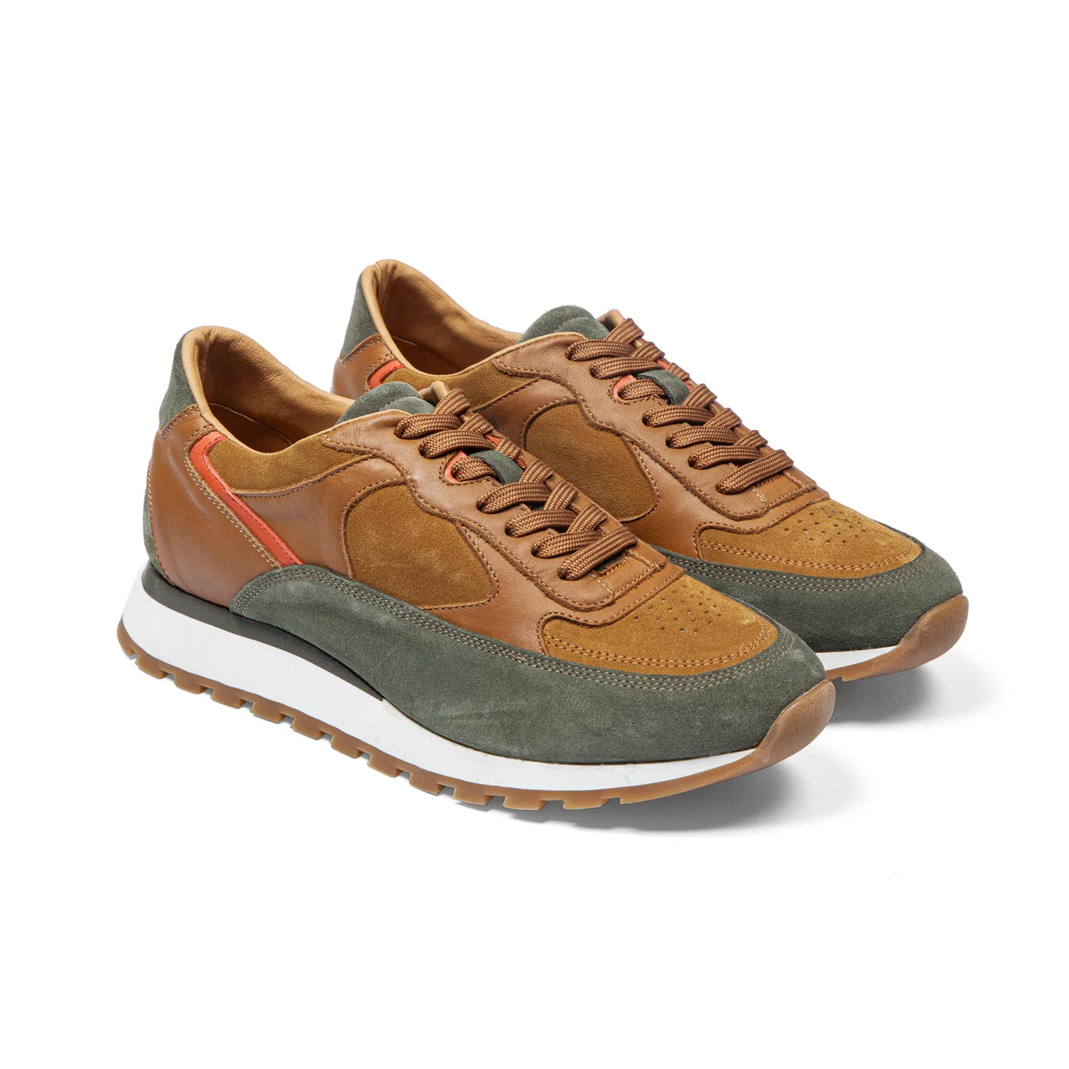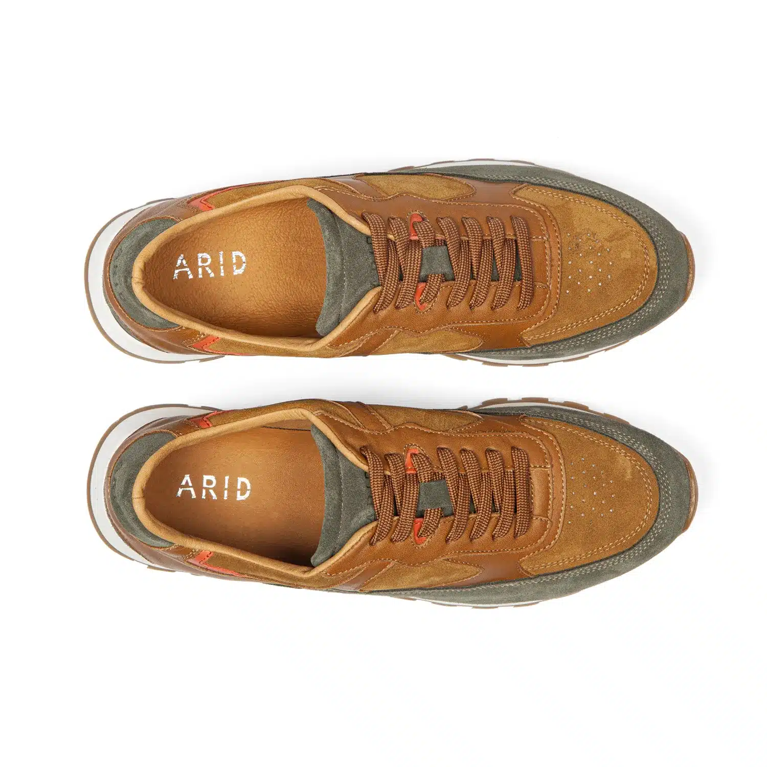 Cuir et suède sélectionnés dans des tanneries auditées. Le cuir cognac résiste aux frottements quotidiens, le suédé kaki apporte robustesse et style moderne. Des matériaux qui vieillissent bien.