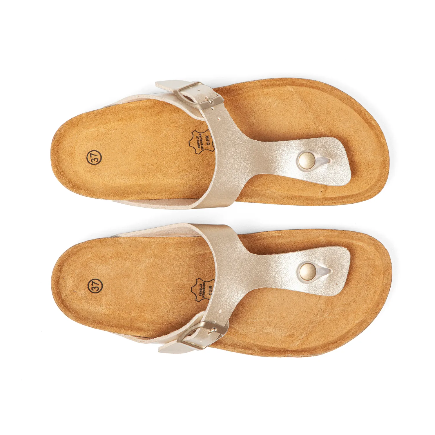 La boucle ajuste la tong sur votre coup-de-pied en quelques gestes. La bride entre-doigts épouse délicatement vos orteils. Largeur standard qui accueille votre pied confortablement. Maintien parfait sans point de pression, liberté absolue à chaque pas. - Semelle EVA très souple + liège isolant