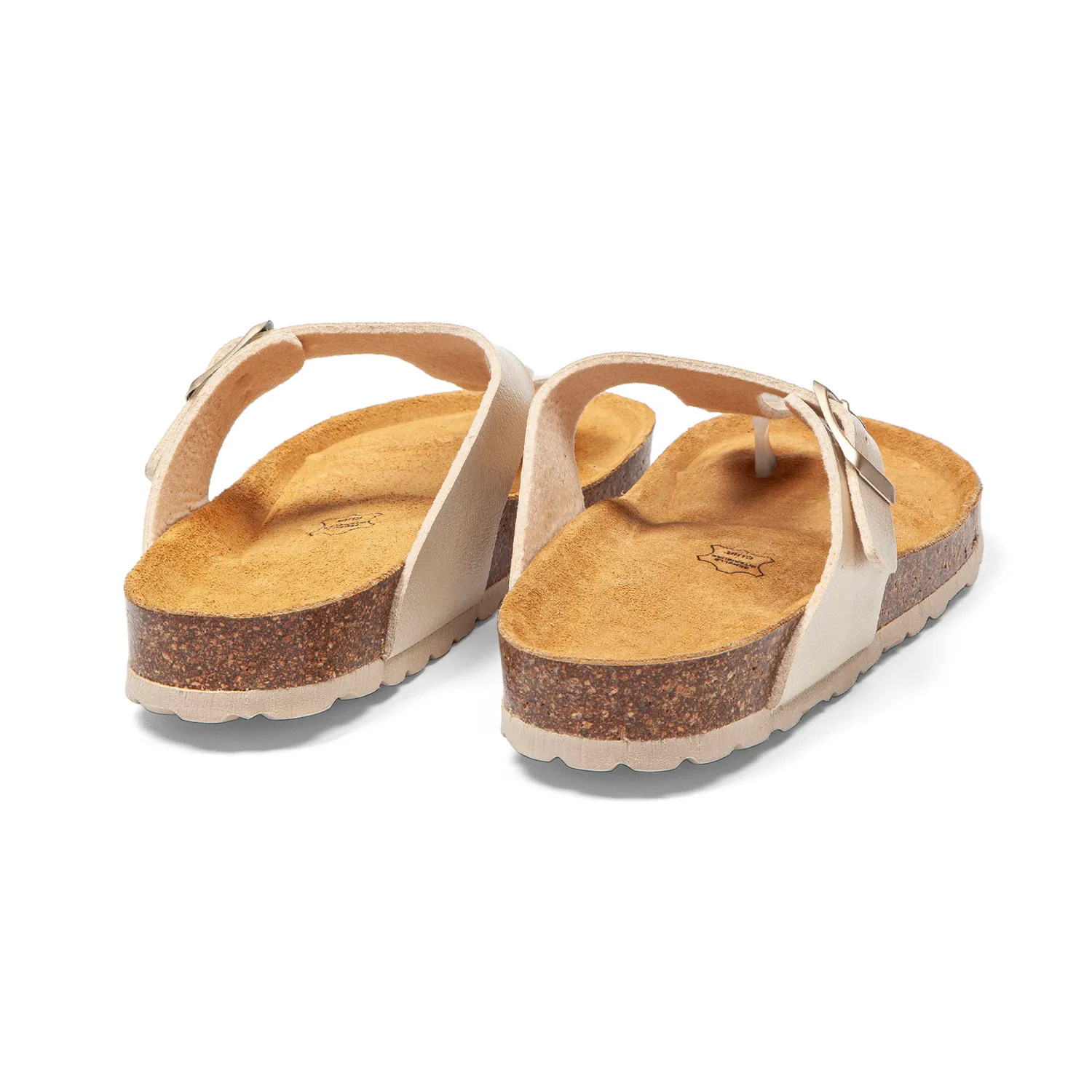Synthétique de qualité dans un beige irisé aux reflets nacrés qui capte la lumière à chaque mouvement. La bride fine passe délicatement entre vos orteils sans frotter, le beige lumineux évoque les façades blanches des villages méditerranéens. Les reflets changeants créent une profondeur subtile qui sublime vos pieds nus. La semelle intermédiaire en liège naturel, visible et authentique, révèle l’ADN AROS. Un style raffiné qui marie luminosité nacrée et simplicité épurée, cette élégance discrète qui illumine vos pas en été. Matière synthétique facile d’entretien, légère et souple, qui accompagne tous vos moments de détente estivale. - Conception tricouche : marcher sur des nuages
